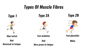 Illustration of the three main muscle fiber types: Type I, Type IIa, Type IIb. Source: TeachPE.com